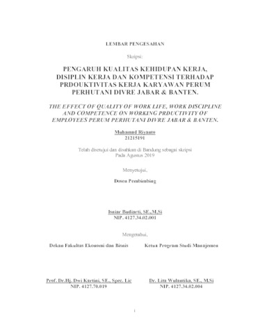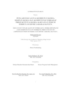 Riyanto, Muhammad (2019) Pengaruh Kualitas Kehidupan Kerja, Disiplin Kerja Dan Kompetensi Terhadap Produktivitas Kerja Karyawan Pada Karyawan Perum Perhutani Divre Jabar & Banten. Other thesis, Universitas Komputer Indonesia.