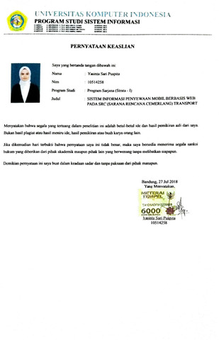 Puspita, Yasinta Sari (2018) Sistem Informasi Penyewaan Mobil berbasis Web pada SRC (Sarana Rencana Cemerlang) Transport. Other thesis, Universitas Komputer Indonesia.