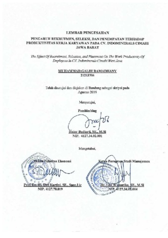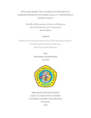 Ramadhany, Muhammad Galih (2019) Pengaruh Rekrutment, Seleksi, Dan Penempatan Terhadap Produktivitas Kerja Pada CV. Indominerals Bandung Barat. Other thesis, Universitas Komputer Indonesia.