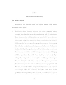 Penelitian ini menghasikan bahwa recruitment, selection, and placement on work productivity berada pada kriteria yang cukup baik. Recruitment mempunyai pengaruh yang sangat menentukan terhadap Produktivitas Kerja, Seleksi memiliki pengaruh yang menentukan terhadap Produktivitas Kerja, Penempatan memiliki pengaruh yang menentukan terhadap Produktivitas Kerja, Recruitment dan Seleksi secara simultan berpengaruh sangat menentukan terhadap Produktivitas Kerja, dan Seleksi dan Penempatan memiliki pengaruh yang sangat menentukan terhadap Produktivitas Kerja.