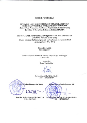 Faridah, Nadya Isti (2019) Pengaruh Laba Bersih, Kebijakan Hutang Dan Ukuran Perusahaan Terhadap Dividend Payout Ratio (Dpr) (Studi Kasus pada Perusahaan Property dan Real Estate Yang Terdaftar di Bursa Efek Indonesia Tahun 2013 - 2017). Other thesis, Universitas Komputer Indonesia.