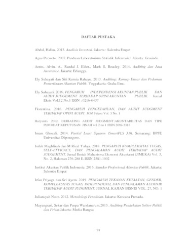 | Uncontrolled Keywords: | Pengalaman Auditor, Audit Judgment, Opini Audit. |
