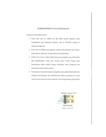 UNIKOM_GITA ARGIYANTI_PERNYATAAN KEASLIAN.pdf - Published Version
