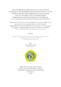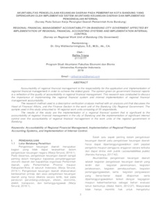 Triana, Rafika (2019) Akuntabilitas Pengelolaan Keuangan Daerah Pada Pemerintah Kota Bandung Yang Dipengaruhi Oleh Implementasi Sistem Akuntansi Keuangan Daerah Dan Implementasi Pengendalian Internal (Survey Pada Satuan Kerja Perangkat Daerah Pemerintah Kota Bandung). Other thesis, Universitas Komputer Indonesia.