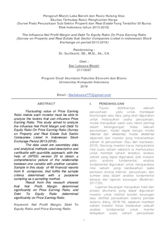 Bhakti, Dwi Laksana (2019) Pengaruh Marjin Laba Bersih dan Rasio Hutang Atas Ekuitas Terhadap Rasio Penghasilan Harga (Survei Pada Perusahaan Sub Sektor Properti dan Real Estate Yang Terdaftar Di Bursa Efek Indonesia tahun 2013-2018). Other thesis, Universitas Komputer Indonesia.