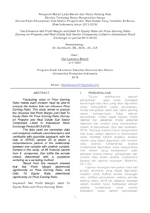 Nilai Price Earning Ratio yang berubah – ubah membuat setiap investor harus mampu menganalisis faktor-faktor yang mempengaruhi Price Earning Ratio. Penelitian ini bertujuan untuk menganalisis Pengaruh Marjin Laba Bersih dan Rasio Hutang Atas Ekuitas Terhadap Rasio Penghasilan Harga (Survei pada perusahaan Sub Sektor Properti dan Real Estate yang Terdaftar di Bursa Efek Indonesia Tahun 2013-2018). Data yang digunakan merupakan data sekunder dan metode analisis yang digunakan yaitu metode deskriptif dan verifikatif dengan pendekatan kuantitatif, dengan bantuan program (SPSS) versi 20 untuk memperoleh gambaran yang menyeluruh mengenai hubungan antara variabel satu dengan variabel yang lain. Total sampel penelitian adalah 48 laporan keuangan perusahaan terdiri dari 8 perusahaan, yang memenuhi kriteria sampel yang ditentukan melalui metode purposive sampling. Hasil dari penelitian ini menunjukan bahwa Net Profit Margin berpengaruh secara signifikan terhadap Price Earning Ratio, dan Debt To Equity Ratio berpengaruh secara signifikan terhadap Price Earning Ratio.