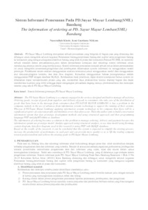 PD.Sayur Mayur Lembang merupakan sebuah perusahaan yang bergerak di bagian jasa yang dirancang dan dibangun untuk mengelola seluruh kegiatan Pemesanan barang,penerimaan barang dari suplier serta pengiriman barang ke konsumen yang mengurus kegiatan distribusi barang yang telah di pesan dari konsumen.Namun PD.SML ini memiliki sebuah masalah dalam perusahaannya,yaitu dalam pemanfaatan kemajuan dari teknologi sistem informasi untuk mendukung jalannya sistem yang mereka punya. Sistem informasi pemesanan menjadi sebuah solusi dalam permasalahan ini untuk mengelola pemesanan,pengiriman dan pembayaran dikarenakan system informasi ini menggunakan model prototype .Pendekatan secara analisis menggunakan analisis terstruktur,untuk menggunakan model data menggunakan alur dokumen,diagram konteks, dan data flow diagram. Kemudian menggunakan bahasa pemogramanya adalah menggunakan PHP dengan database MySQL. Berdasarkan hasil penelitian, dapat ditarik kesimpulan bahwa system ini diharapkan dapat mempermudah proses yang ada, menambah daya produktifitas kinerja disetiap bagian dan dapat memberikan kualitas yang lebih sehingga dapat mengangkat perusahaan dagang menuju profesionalisme dan mencapai sasaran yang ada di PD.Sayur Mayur Lembang