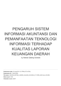 | Uncontrolled Keywords: | Kualitas Laporan Keuangan Daerah, Sistem Informasi Akuntansi, Teknologi Informasi |