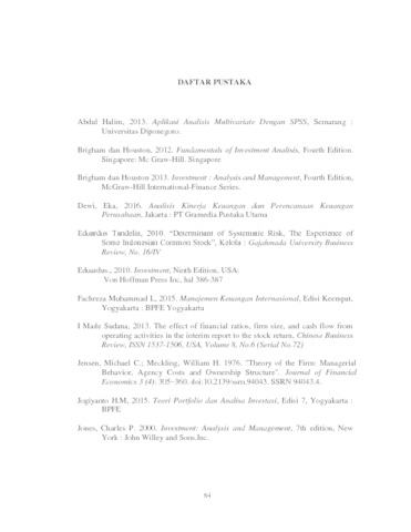 Uncontrolled Keywords: | Return On Asset, Debt to Equity Ratio dan Return Saham |