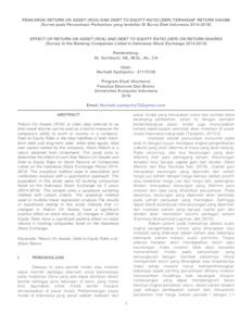 Return On Asset (ROA) atau sering disebut juga dengan total pengembalian aktiva dapat dikatakan sebagai alat untuk mengukur kemampuan perusahaan atas keuntungan atau pendapatan pada suatu perusahaan. Debt to Equity Ratio merupakan total kewajiban baik utang jangka pendek maupun utang jangka panjang, sedangkan total ekuitas, total modal sendiri yang dimiliki perusahaan. Return Saham adalah imbalan yang diperoleh dari investasi Penelitian ini bertujuan untuk mengetahui pengaruh arus kas Return On Asset dan Debt to Equity Ratio terhadap Return Saham pada Perusahaan Yang Terdaftar Di Bursa Efek Indonesia Periode 2014-2018. Metode analisis yang digunakan adalah analisis deskriptif dan verifikatif dengan pendekatan kuantitatif. Populasi dalam penelitian ini adalah 43 perusahaan perbankan yang terdaftar di Bursa Efek Indonesia selama 5 tahun (2014-2018). Sampel menggunakan metode purposive sampling dengan kriteria-kriteria tertentu. Metode analisis yang digunakan adalah analisis regresi linier berganda. Hasil pengujian hipotesis dalam penelitian ini menunjukkan bahwa (1) perubahan Return On Asset memiliki pengaruh positif yang signifikan pada Return saham, (2) perubahan Debt to Equity Ratio memiliki pengaruh positif yang signifikan pada Return saham di perusahaan perbankan yang terdaftar di Bursa Efek Indonesia.