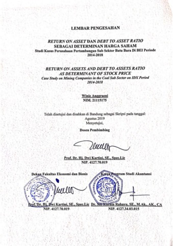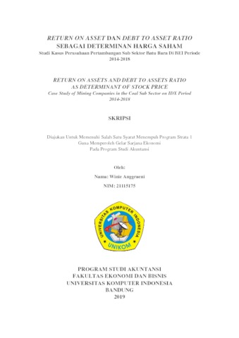 Anggraeni, Winie (2019) Return On Asset Dan Debt To Asset Ratio Sebagai Determinan Harga Saham Studi Kasus Perusahaan Pertambangan Sub Sektor Batu Bara Di BEI Periode 2014-2018. Other thesis, Universitas Komputer Indonesia.
