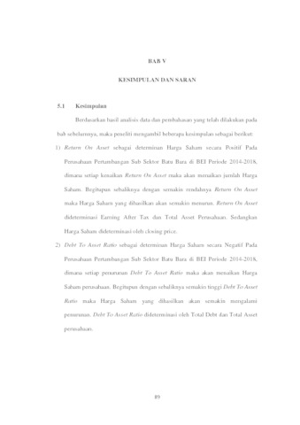 Penelitian ini menggunakan variabel bebas Return On Asset dan Debt To Asset Ratio dan variabel terikat yaitu Harga Saham. Populasi dalam penelitian ini adalah laporan keuangan dari perusahaan Pertambangan Sub Sekto Batu Bara di BEI 2014-2018. Metode pengumpulan data dilakukan melalui data sekunder di mana data tersebut diperoleh dari situs web resmi BEI yaitu idx.co.id. Jumlah sampel yang diperoleh sebanyak 8 perusahaan yang memenuhi kriteria dengan menggunakan metode purposive sampling. Data yang digunakan dalam penelitian ini adalah kuantitatif dengan metode analisis deskriptif dan verifikatif. Hasil penelitian menunjukkan bahwa Harga Saham ditentukan Return On Asset dengan hubungan yang positif dan Harga Saham ditentukan Debt To Asset Ratio dengan hubungan yang negatif. Secara parsial Harga Saham dominan ditentukan Return On Asset dibandingkan Debt To Asset Ratio.