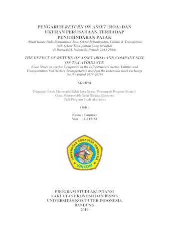 Cuminar, Cuminar (2019) Pengaruh Return On Asset (Roa) Dan Ukuran Perusahaan Terhadap Penghindaran Pajak (Studi Kasus Pada Perusahaan Sub Sektor Transportasi yang Terdaftar di Bursa Efek Indonesia Periode 2014-2018). Other thesis, Universitas Komputer Indonesia.