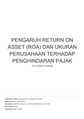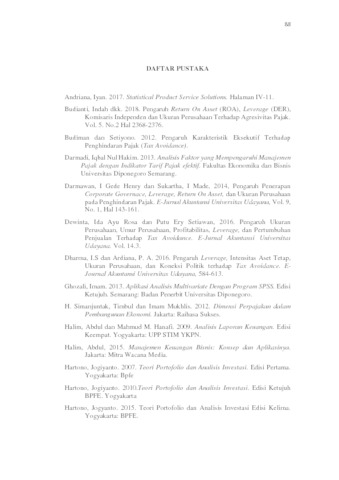 Penelitian ini menguji pengaruh Return On Asset (ROA) dan Ukuran Perusahaan terhadap Penghindaran Pajak pada perusahaan jasa sub sektor transportasi yang terdaftar di Bursa Efek Indonesia tahun 2014-2018. Masalah yang terjadi pada perusahaan jasa sub sektor transportasi adalah meningkatnya jumlah penghindaran pajak, meskipun Return On Asset (ROA) dan Ukuran Perusahaan mengalami penurunan.