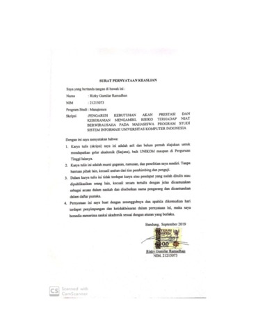 UNIKOM_RIZKY GUMILAR RAMADHAN_SURAT PERNYATAAN KEASLIAN.pdf - Published Version