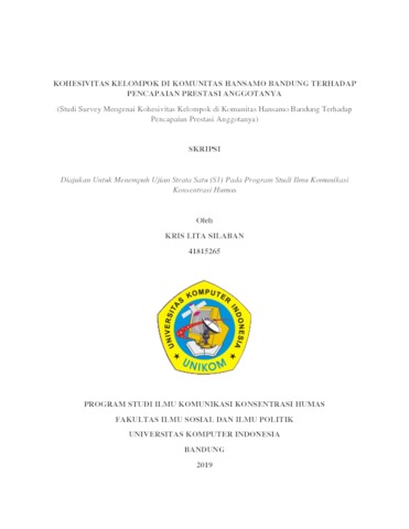 Silaban, Kris Lita (2019) Kohesivitas Kelompok Di Komunitas Hansamo Bandung Terhadap Pencapaian Prestasi Anggotanya. Other thesis, Universitas Komputer Indonesia.