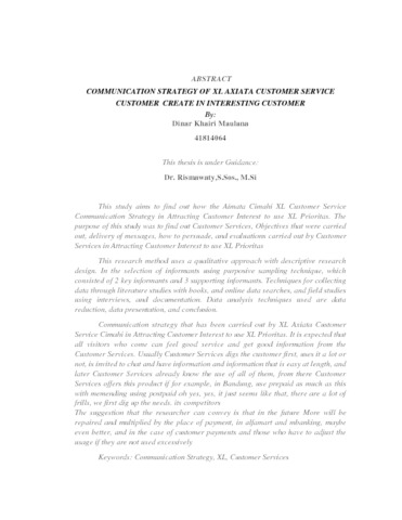 | Uncontrolled Keywords: | Strategi Komunikasi, XL, Customer Services. |