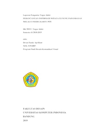 Apriliant, Devan Sandy (2019) Perancangan Informasi Wisata Gunung Papandayan Melalui Media Kartu Pos. Other thesis, Universitas Komputer Indonesia.