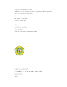 Papandayan merupakan sebuah gunung api staro yang terletak di Kabupaten Garut, Jawa Barat di Kecamatan Cisurupan. Gunung ini mempunyai beberapa destinasi wisata diantaranya hutan mati, pondok salada, gober hoet dan kawasan kawah. Secara keseluruhan gunung ini mempunyai panorama alam yang indah dengan lingkungan yang masih alami. Kebanyakan masyarakat mengetahui adanya gunung Papandayan namun, tidak mengetahui destinasi yang ada di Wisata Gunung Papandayan. Melalui Analisa yang dilakukan, kurangnya media pengingat yang dapat memberikan informasi destinasi wisata sekaligus menarik minat masyarakat untuk berkunjung ke tempat wisata tersebut. Maka dari itu dirancang media kartu pos seri berbahasa Indonesia yang berisi tentang informasi destinasi-destinasi wisata gunung Papandayan beserta panduan untuk berkemah di gunung Papandayan.