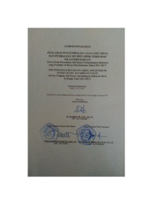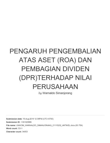 | Uncontrolled Keywords: | Pengembalian Atas aset (ROA), Pembagian Dividen (DPR) dan Nilai Perusahaan. |