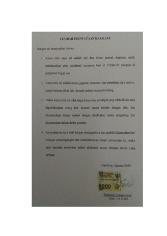 UNIKOM_WARNALDO SIMANJORANG_4_LEMBAR PERYATAAN KEASLIAN.pdf - Published Version