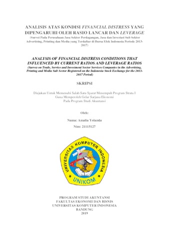 Yolanda, Amalia Yolanda (2019) Analisis Atas Kondisi Financial Distress Yang Dipengaruhi Oleh Rasio Lancar Dan Leverage (Survei Pada Perusahaan Jasa Sektor Perdagangan, Jasa dan Investasi Sub Sektor Advertising, Printing dan Media yang Terdaftar di Bursa Efek Indonesia Periode 2013-2017). Other thesis, Universitas Komputer Indonesia.