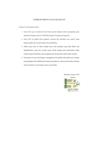 UNIKOM_AMALIAYOLANDA_2.LEMBAR PERNYATAAN KEASLIAN.pdf - Published Version
