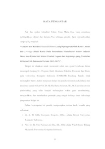 Hasil pengujian hipotesis dalam penelitian ini menunjukkan bahwa Rasio Lancar dan Leverage berpengaruh signifikan terhadap kondisi Financial Distress.
