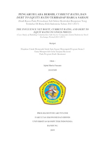 Fauzan, Iqbal Hariz (2019) Pengaruh Laba Bersih, Current Ratio, Dan Debt To Equity Ratio Terhadap Harga Saham (Survei pada Perusahaan Sub Sektor Konstruksi dan Pembangunan yang Terdaftar di Bursa Efek Indonesia periode 2013-2017). Other thesis, Universitas Komputer Indonesia.