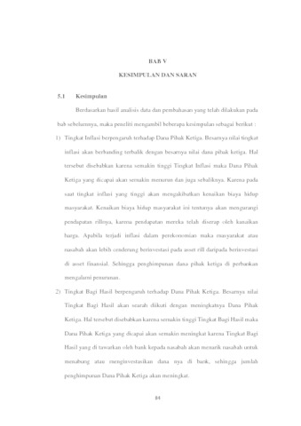 Hasil pengujian hipotesis dalam penelitian ini menunjukan bahwa tingkat inflasi dan tingkat bagi hasil berpengaruh signifikan terhadap dana pihak ketiga.