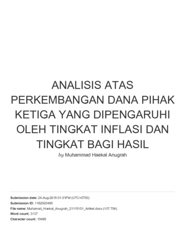 | Uncontrolled Keywords: | Tingkat Inflasi, Tingkat Bagi Hasil, Dana Pihak Ketiga. |