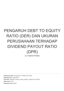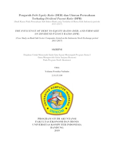 Naibaho, Yuliana Pronika (2019) Pengaruh Debt Equity Ratio (DER) dan Ukuran Perusahaan Terhadap Dividend Payout Ratio (DPR) (Studi Kasus Pada Perusahaan Sub Sektor Bank yang Terdaftar di Bursa Efek Indonesia periode 2013-2017). Other thesis, Universitas Komputer Indonesia.