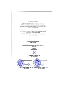 Penelitian ini menguji secara empiris pengaruh Debt to Equity Ratio dan Ukuran Perusahaan terhadap Dividend Payout Ratio pada perusahaan Sub Sektor Bank yang terdaftar di Bursa Efek Indonesia pada periode 2013-2017. Penelitian ini bertujuan untuk mengetahui pengaruh Debt to Equity Ratio dan Ukuran Perusahaan terhadap Dividend Payout Ratio pada Perusahaan Sub Sektor Bank yang terdaftar di Bursa Efek Indonesia pada periode 2013-2017.