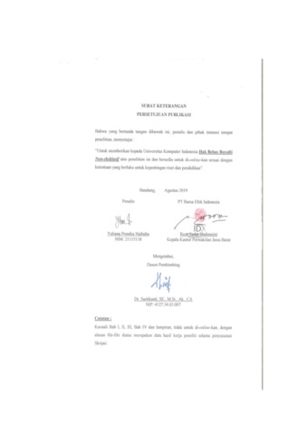 UNIKOM_YULIANA PRONIKA NAIBAHO_3.SURAT KETERANGAN PERSETUJUAN PUBLIKASI UNIKOM.pdf - Published Version