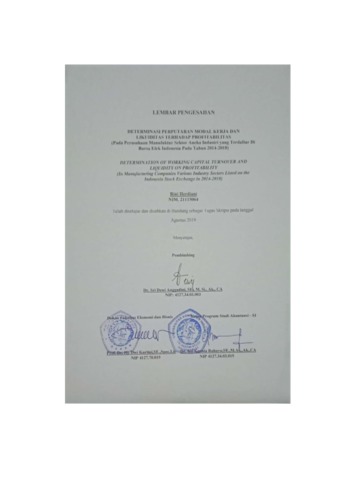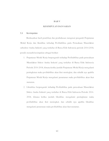 | Uncontrolled Keywords: | Profitabilitas, Likuiditas dan Perputaran Modal Kerja. |