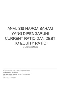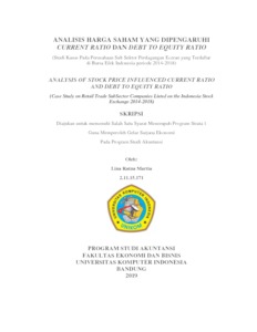 Martia, Lina Ratna (2019) Analisis Harga Saham Yang Dipengaruhi Current Ratio Dan Debt To Equity Ratio (Studi Kasus Pada Perusahaan Sub Sektor Perdagangan Eceran yang Terdaftar di Bursa Efek Indonesia periode 2014-2018). Other thesis, Universitas Komputer Indonesia.