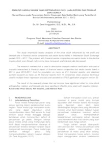 Penelitian ini menguji secara empiris analisis harga saham yang dipengaruhi oleh laba bersih dan tingkat suku bunga pada perusahaan sektor keuangan sub sektor perbankan yang terdaftar di Bursa Efek Indonesia tahun 2013-2017. Masalah yang terjadi pada perusahaan sektor keuangan sub sektor perbankan adalah menurunnya harga saham meskipun laba bersih mengalami peningkatan, dan tingkat suku bunga mengalami penurunan. Metode penelitian yang digunakan adalah metode analisis deskriptif verifikatif dengan unit analisis yang diteliti adalah laporan keuangan perusahaan sektor keuangan sub sektor perbankan yang terdaftar di BEI pada tahun 2013-2017. Dan populasi sebanyak 215, dan didapat sampel penelitian sebanyak 55 laporan keuangan dari 11 perusahaan. Teknik analisis data yang digunakan adalah analisis regresi linier berganda dan dibantu oleh program aplikasi SPSS versi 20. Hasil penelitian menunjukan bahwa laba bersih berpengaruh signifikan terhadap harga saham dengan hubungan yang positif, dan tingkat suku bunga berpengaruh signifikan terhadap harga saham dengan hubungan yang negatif.