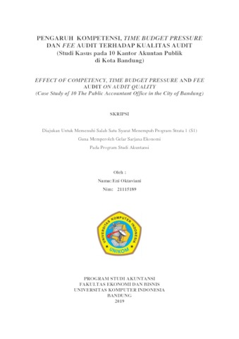 Oktaviani, Eni (2019) Pengaruh Kompetensi, Time Budget Pressure Dan Fee Audit Terhadap Kualitas Audit (Studi Kasus pada 10 Kantor Akuntan Publik di Kota Bandung). Other thesis, Universitas Komputer Indonesia.