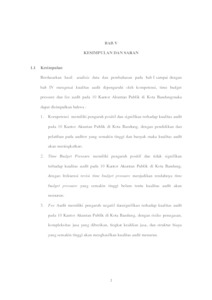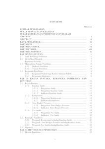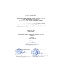 Hasil dari penelitian ini menghasilkan bahwa kompetensi, time budget pressure dan fee audit berpengaruh secara simultan terhadap kualitas audit, dengan pengaruh parsial positif pada kompetensi, tidak berpengaruh signifikan pada time budget pressure dan berpengaruh negatif pada fee audit.