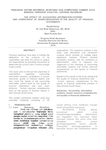 Sari, Dewi Purwita (2019) Pengaruh Sistem Informasi Akuntansi Dan Kompetensi Sumber Daya Manusia Terhadap Kualitas Laporan Keuangan. Other thesis, Universitas Komputer Indonesia.