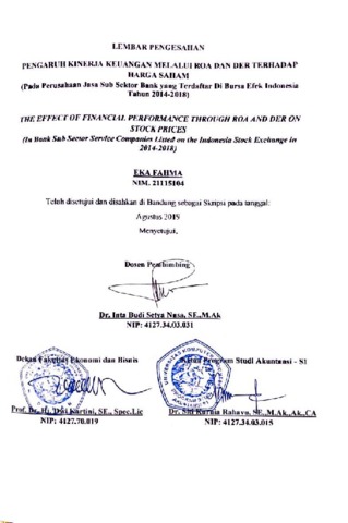 Fahma, Eka (2019) Pengaruh Kinerja Keuangan Melalui Roa Dan Der Terhadap Harga Saham (Pada Perusahaan Jasa Sub Sektor Bank yang Terdaftar Di Bursa Efek Indonesia Tahun 2014-2018). Other thesis, Universitas Komputer Indonesia.