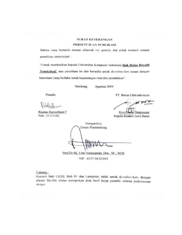 UNIKOM_21115182_REGINA RAMADHANI FITRI_7. SURAT KETERANGAN PERSETUJUAN PUBLIKASI.pdf - Published Version