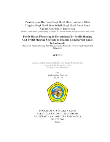 Dharma, Rachmadian (2019) Pembiayaan Berbasis Bagi Hasil Dideterminasi Oleh Tingkat Bagi Hasil Dan Selisih Bagi Hasil Pada Bank Umum Syariah Di Indonesia (Survey pada bank syariah yang terdaftar di Otoritas Jasa Keuangan Tahun 2014-2018). Other thesis, Universitas Komputer Indonesia.