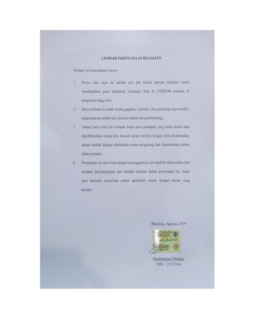 UNIKOM_RACHMADIAN DHARMA_1.LEMBAR PERNYATAAN KEASLIAN.pdf - Published Version