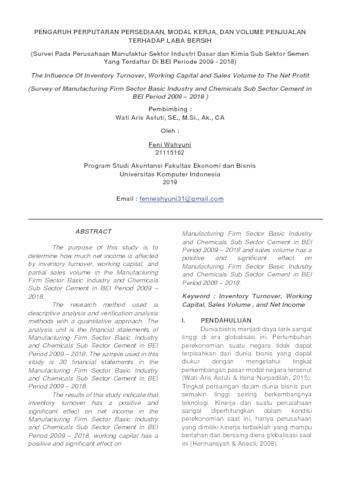 Wahyuni, Feni (2019) Pengaruh Perputaran Persediaan, Modal Kerja, Dan Volume Penjualan Terhadap Laba Bersih (Survei Pada Perusahaan Manufaktur Sektor Industri Dasar dan Kimia Sub Sektor Semen Yang Terdaftar Di BEI Periode 2009 - 2018). Other thesis, Universitas Komputer Indonesia.