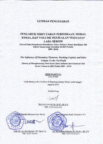| Uncontrolled Keywords: | Perputaran Persediaan, Modal Kerja, Volume Penjualan dan Laba Bersih |