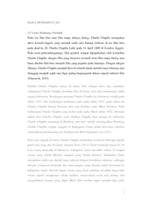Charlie Chaplin merupakan aktor komedian inggris fenomenal karena berbagai macam prestasi dan menjadi tokoh yang dikenal dunia. Charlie Chaplin membuat film di Asia, salah satunya Indonesia dan sempat berkunjung ke Garut untuk berwisata ke berbagai daerah di Garut khususnya. Peristiwa tersebut masih belum diketahui oleh sebagian masyarakat Garut sendiri dan informasi mengenai kedatangan Charlie Chaplin di Garut tidak begitu jelas dan detail, yang di dapat melalui hasil observasi, wawancara, dan kuesioner. Mengacu pada hal tersebut pembuatan buku cerita bergambar mengenai kunjungan Charlie Chaplin di Garut menjadi sebuah media informasi yang akan disampaikan secara detail sesuai dengan garis sejarahnya. Dari pembuatan buku cerita bergambar ini diharapkan media informasi yang dibuat dapat membantu masyarakat Garut untuk menambah wawasan mengenai kedatangan Charlie Chaplin di Garut, serta dapat memunculkan kebanggaan bagi masyarakat lokal sampai dengan regional karena tokoh dunia Charlie Chaplin telah datang ke Garut.