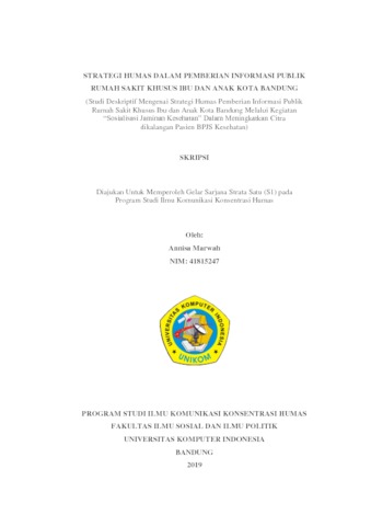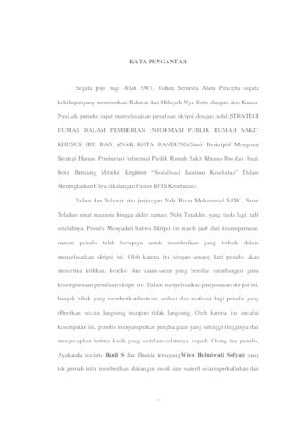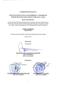 Marwah, Annisa (2019) Strategi Humas Dalam Pemberian Informasi Publik Rumah Sakit Khusus Ibu Dan Anak Kota Bandung (Studi Deskriptif Mengenai Strategi Humas Pemberian Informasi Publik Rumah Sakit Khusus Ibu dan Anak Kota Bandung Melalui Kegiatan “Sosialisasi Jaminan Kesehatan” Dalam Meningkatkan Citra Dikalangan Pasien BPJS Kesehatan). Other thesis, Universitas Komputer Indonesia.