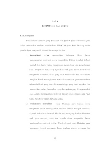 Saran dari penelitian ini guru diharapkan dapat berinovasi dalam memberikan sesuatu yang disenangi oleh siswa tunagrahita atau guru mengikuti tentang pelatihan bagaimana gaya komunikasi verbal dan nonverbal terhadap siswa tunagrahita, sekolah menambah fasilitas kelas yang lebih besar agar siswa lebih nyaman dalam belajar dan memasukan speaker kedalam setiap kelas untuk menyetelkan musik seperti instrumental sehingga siswa tunagrahita dapat lebih mudah menerima motivasi belajar yang diberikan oleh guru.