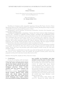 Penelitian ini bertujuan untuk mengetahui bagaimana Konsep Diri Pasien Scoliosis Dalam Membangun Motivasi Diri di Rumah Sakit Umum Daerah Lembang, Bandung Barat dengan harapan membentuk konsep diri yang positif bagi pasien scoliosis. Menggunakan metode penelitian fenomenologi berdasarkan fenomena dan kenyataan yang terjadi dalam lingkungan sosial. Penelitian ini menghasilkan pengetahuan, “Konsep Diri Pasien Scoliosis Dalam Membangun Motivasi Diri”. Penelitian ini dilakukan melalui research, wawancara, dan menghasilkan proses pembentukan konsep diri. Pembahsan, dalam pembentukan konsep diri ada bebrapa pengaruh yang akan berdampak pada hasil konsep diri tersebut, dua di antaranya yaitu significant others dan reference group. Significant others adalah orang yang berada satu lingkungan dekat dan melakukan penilaian. Hal tersebut membentuk konsep diri orang di sekitarnya. Reference group merupakan lingkungan yang menjadi sebuah kelompok namun di luar keluarga. Bila kita anggap kelompok tersebut penting, maka akan menjadi kekuatan untuk menentukan konsep diri.